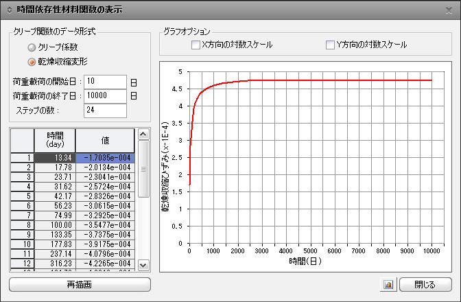 適用する乾燥収縮関数を選択します。乾燥収縮関数を追加入力または、修正する場合は をクリックして、