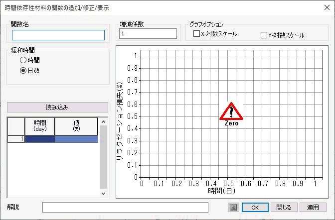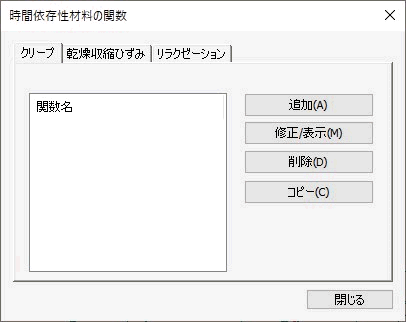 時間依存性材料(クリープ/乾燥収縮)関数 |
