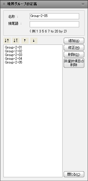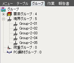 リボンメニュー : モデル > フレーム定義 > 境界グループの定義 ツリーメニュー : メニュー タブ > グループ > 境界グループの定義 ツリーメニュー : グループタブ > 境界グループのポップアップメニュー利用 |