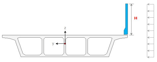 下図のようにモデリングに反映してない防護壁の高さHを考慮して、圧力荷重を