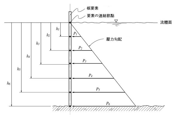 静水圧によって板要素の連結節点に入力された集中荷重 |