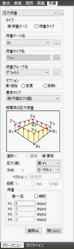 リボンメニュー : 荷重 > 静的荷重 > 仕上げ/圧力 > 圧力荷重 ツリーメニュー : メニュー タブ > 静的荷重 > 圧力荷重 |