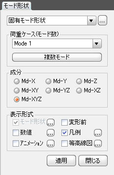 リボンメニュー : 結果 > モード形状 > 固有モード形状