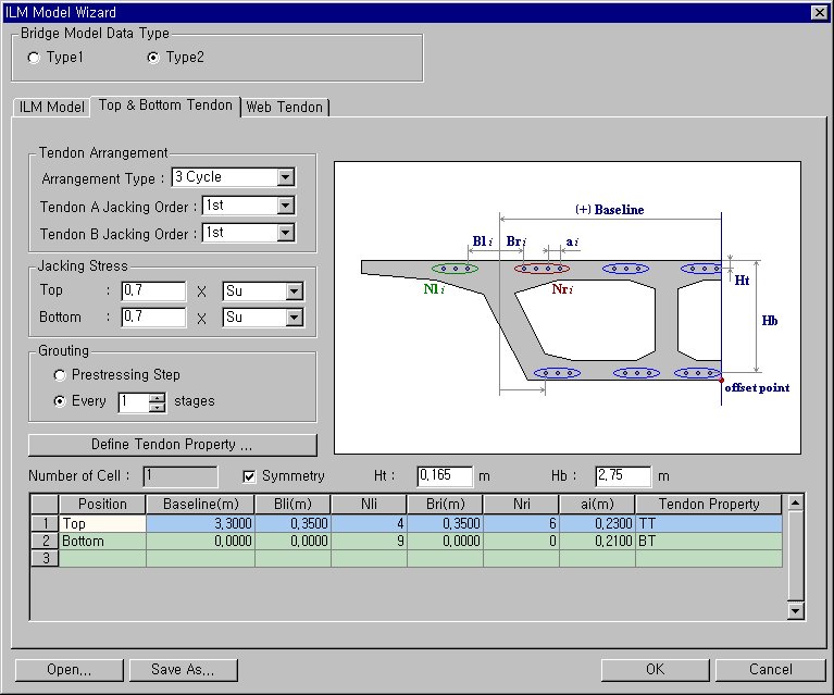 Wizard ±â´ÉÀ» ÀÌ¿ëÇÑ ILM ±³·® ¸ðµ¨¸µÀº µÎ°³ÀÇ Wizard(ILM Bridge Model Wizard, ILM Bridge Stage Wizard) °úÁ¤À» °ÅÃļ ÀÛ¼ºÇÕ´Ï´Ù. ILM Bridge Model Wizard¿¡¼´Â ÅÙ´øÀÇ ¹èÄ¡ ¹× ´Ü¸éÁ¤ÀǸ¦ Æ÷ÇÔÇÏ¿© ½Ã°ø´Ü°è ÇØ¼®¿¡ ÇÊ¿äÇÑ ¸ðµ¨µ¥ÀÌÅ͸¦ ÀÚµ¿»ý¼ºÇϰí, ¾ÐÃâ´Ü°è¸¦ Æ÷ÇÔÇÑ ½Ã°ø´Ü°è´Â "ILM Bridge Stage Wizard" ¿¡¼ Á¤ÀÇÇÕ´Ï´Ù.