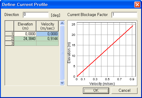 Direction : ÇØ·ùÀÇ ¹æÇâ, ÀԷ¹æ¹ýÀº À§ÀÇ ±×¸²À¸·Î ³ªÅ¸³½ Wave Direction°ú µ¿ÀÏÇÕ´Ï´Ù. Current Blockage Factor : ±¸Á¶¹°¿¡ ÀÇÇÑ ÇØ·ùÀÇ ¿µÇâ°¨¼Ò°è¼ö