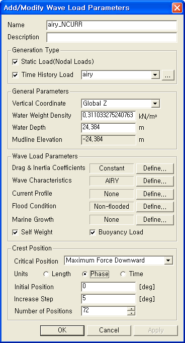 Wave Load »êÁ¤À» À§ÇÑ Critical Position°ú StepÀ» ÀÔ·ÂÇÕ´Ï´Ù.