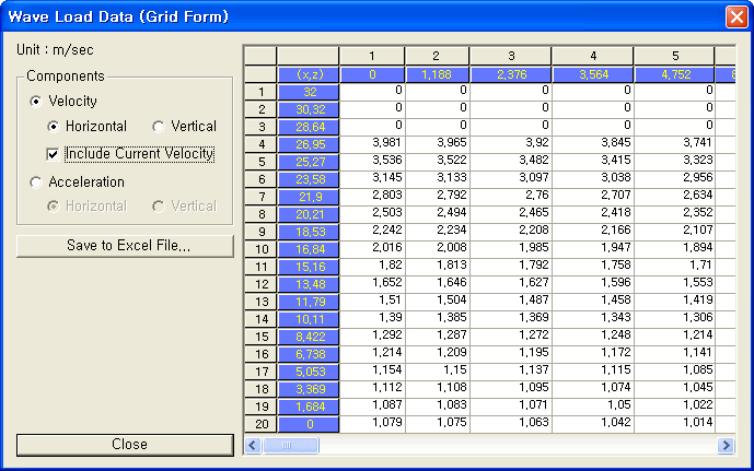 Wave Height : ÆÄ°í Wave Length : ÆÄÀå Wave Period : ÆÄÁÖ±â, ÇÑ ÆÄÀåÀ» Åë°úÇÏ´Â ¼Óµµ Kinematics Factor : ÇØ¾ç ÆÄ¶ûÀÇ ºÒ±ÔÄ¢¼ºÀ¸·Î ÀÎÇÑ ÆÄÀÇ ¿ªÇÐÀû °Åµ¿À» °í·ÁÇϱâ À§ÇÑ °è¼ö·Î¼, 0 £¼ factor ¡Â 1 ÀÇ °ªÀ» °®´Â´Ù. Current Velocity Surface(M.W.L) : Æò±ÕÇØ¼ö¸é¿¡¼ ÇØ·ùÀÇ ¼Óµµ Bottom : ÇØÀú¸é¿¡¼ ÇØ·ùÀÇ ¼Óµµ