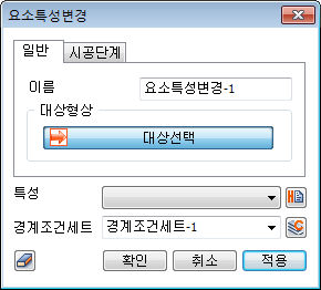 요소망 세트가 미리 shotcrete 001 ~ shotcrete 010으로 지정되어 있을 때, 요소특성변경 > 일반을 통해서는 각각에 대해서 별도로 요소속성이 변경되는 경계조건을 지정해야만 합니다. 반면에, 요소특성변경 > 시공단계의 경우 대상을 shotcrete 001 ~ shotcrete 010으로 선택하면 한 번의 클릭으로 10개의 경계조건세트를 생성할 수 있습니다.