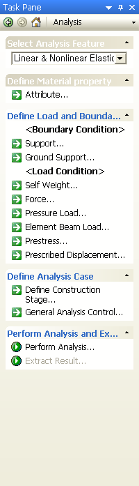GTS´Â ¼±Çü/ºñ¼±Çü ÇØ¼®, ½Ã°ø´Ü°èÇØ¼®, »ç¸é¾ÈÁ¤Çؼ®, ħÅõÇØ¼®, °íÀ¯Ä¡Çؼ®, ÁöÁøÀÀ´ä½ºÆåÆ®·³Çؼ®, ½Ã°£ÀÌ·ÂÇØ¼®, ¾Ð¹ÐÇØ¼® µî ÃÑ 9°³ÀÇ ÇØ¼®±â´ÉÀ» °¡Áö°í ÀÖ½À´Ï´Ù. ÇØ¼®ÀÇ Á¾·ù¿¡ µû¶ó ºÎ¿©µÇ´Â ÇÏÁß/°æ°èÁ¶°Ç µîÀÌ ´Ù¸£¸ç ÀÌ´Â »ç¿ëÀÚ°¡ ÃæºÐÇÑ ÀÌÇØ¿Í ¸¹Àº »ç¿ëÀ» ÅëÇØ ±âº»ÀûÀ¸·Î ¼÷ÁöÇϰí ÀÖ¾î¾ß Çϳª GTS¸¦ »ç¿ëÇÏ´Â UserÀÇ ÆíÀǼºÀ» À§ÇØ °¢ ÇØ¼®ÀÇ È帧À» Á¦½ÃÇϰí ÇØ¼®´Ü°è¿¡ ÇÊ¿äÇÑ ±â´ÉÀ» ÀÚµ¿À¸·Î »ç¿ëÇÒ ¼ö ÀÖ´Â ±â´ÉÀÔ´Ï´Ù. »Ó¸¸ ¾Æ´Ï¶ó Task Pane¿¡¼´Â »ç¿ëÀÚ°¡ ÀÚÁÖ »ç¿ëÇÏ´Â ÇØ¼®±â´ÉÀ̳ª È帧À» »ç¿ëÀÚ°¡ Á÷Á¢ »ý¼ºÇÒ ¼ö ÀÖ´Â User Define±â´ÉÀ» Á¦°øÇϸç ÃÖ±Ù¿¡ »ç¿ëÇÑ fileÀ̳ª »ç¿ëÇÏ°í ½ÍÀº fileÀ» ½±°Ô ºÒ·¯¿Ã ¼ö ÀÖ½À´Ï´Ù.
