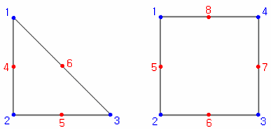 옵션을 선택하면 기본적인 삼각형, 사각형 요소에 중간 절점이 추가된 6절점 삼각형, 8절점 사각형 요소를 사용합니다. 형상함수 또한 2차식으로 적용되므로 상세한 해석결과가 요구되는 경우에 사용하며, 자차요소를 이용한 경우보다 많은 해석 시간이 소요됩니다.