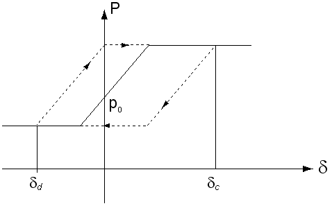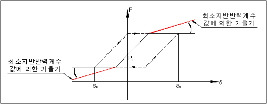 소성변위를 고려하지 않을 경우 탄성영역에서 소성영역으로 진행되는 변위거동은 소성변위를 고려한 경우와 동일한 실선을 따르게 됩니다. 반대로 소성영역에서 반대반향의 하중이 재하되는 경우에도 실선방향으로 거동하므로 잔류변형은 발생하지 않습니다.