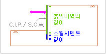 - 최종 굴착단계에서 근입된 흙막이 벽체의 형상이 C.I.P. 또는 S.C.W. 일 때 활성화 됩니다. 근입된 흙막이 벽체의 길이를 입력된 소일 시멘트 길이만큼 길게 하여 히빙 및 보일링 검토시 고려되어 계산됩니다. 단, 근입장 검토는 흙막이 벽체의 근입길이를 사용합니다.
