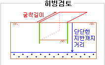 - 지반의 특성값을 이용하여 안정성이 확보되는 근입깊이를 산정하고 적용근입깊이와 산정근입깊이와의 비를 이용하여 안정성을 검토합니다.