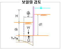 "보일링검토"는 Terzaghi에 의한 방법과 한계동수구배를 고려하는 방법 두 가지 모두 검토합니다.