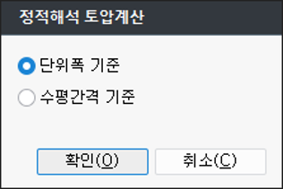 - 정적해석시 적용되는 경험토압을 단위폭 기준 또는 수평간격 기준으로 선택하여 적용할 수 있도록 옵션으로 분리하였으며, 기본값으로는 단위폭 1m에 대한 토압으로 적용되도록 설정하였습니다. 기존과 같이 경험토압을 본당 작용하는 토압으로 보는 경우 수평간격 기준으로 적용하여 해석을 수행하실 수 있습니다.