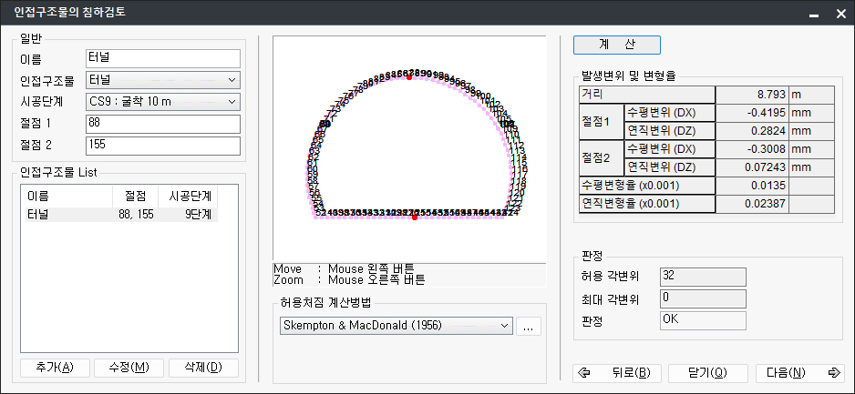 Main menu :설계 > 인접구조물 침하검토