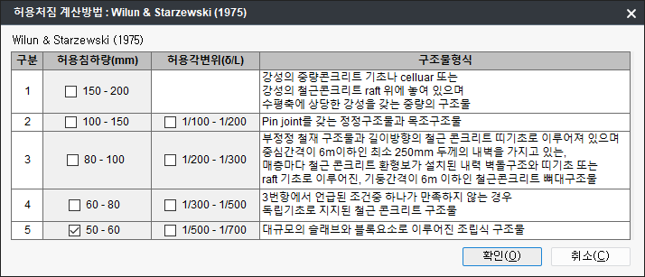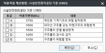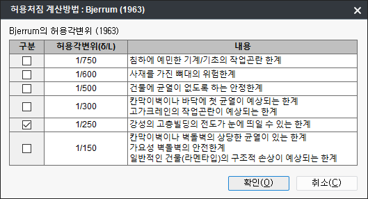 - 선택한 허용각변위와 사용자가 선택한 절점변위를 비교검토합니다.
