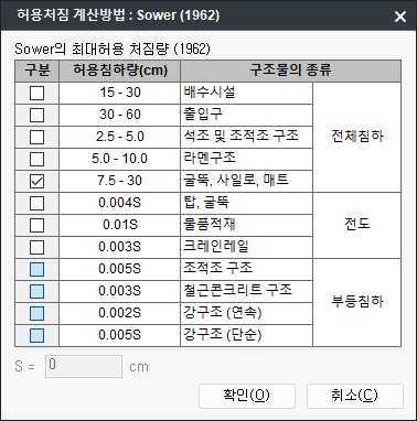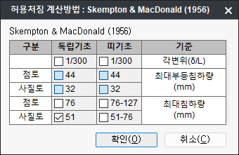 - 선택한 허용침하량과 사용자가 선택한 절점의 최대 침하량값을 비교검토합니다.