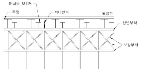 다만, 트러스 형태의 보강이 없는 중간말뚝은 단독으로 연직하중을 지지하는 것으로 설계되어집니다.-