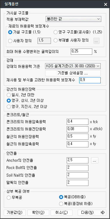 설계 옵션 기준별 상세설정 기본값 변경¶