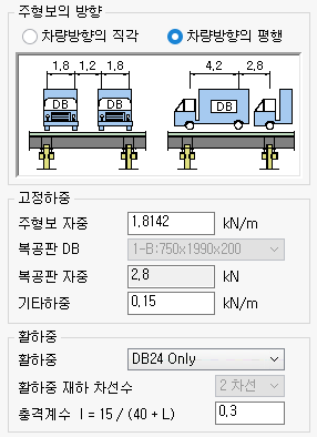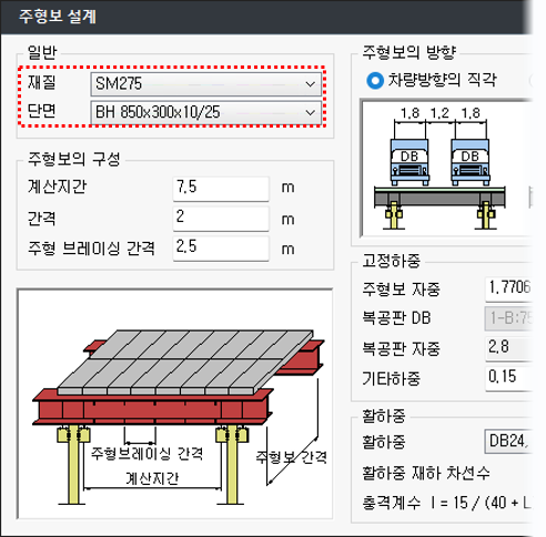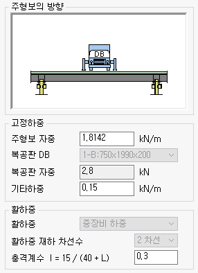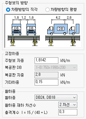 - 충격계수는 주형보의 계산지간에 따라 자동으로 계산되며, 사용자가 직접 입력할 수 있습니다.