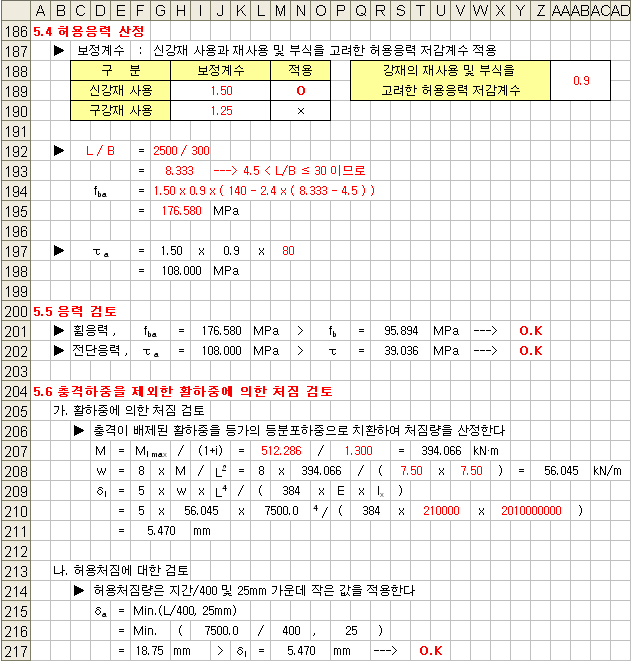 - 지하철 설계기준(2005) : SM400, SS400에 대해서만 검토가 가능합니다.