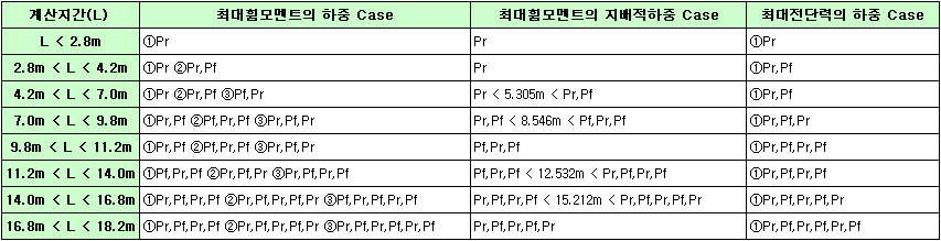 계산지간(L)에 따른 활하중 Case입니다.