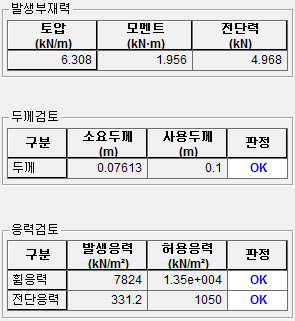 - 체크 옵션으로 설계계산서 생성시 해당 지보재의 단계별 결과(검토항목별) 계산서의 출력유무를 설정할 수 있습니다.