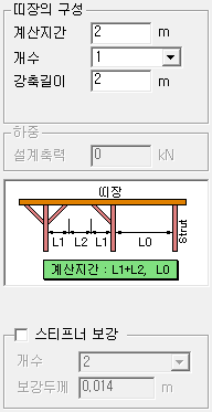 - 오른쪽 지간과 같이 사보강재가 설치되어 있지 않으면, 지보재의 수평간격 (L0)를 계산지간으로 사용합니다.