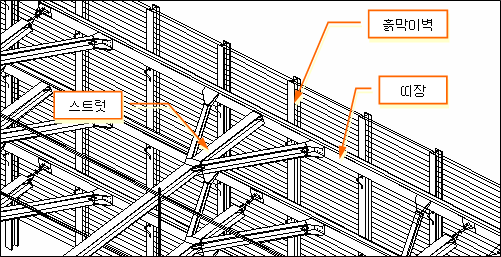 - 띠장은 위의 그림과 같이 흙막이벽의 하중을 지보재에 전달시키는 역할을 합니다.