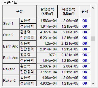- 설계계산서 생성시 출력 체크 옵션을 통하여 설계계산서 생성시 해당 지보재의 결과의 출력유무를 설정할 수 있습니다.