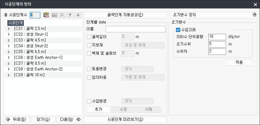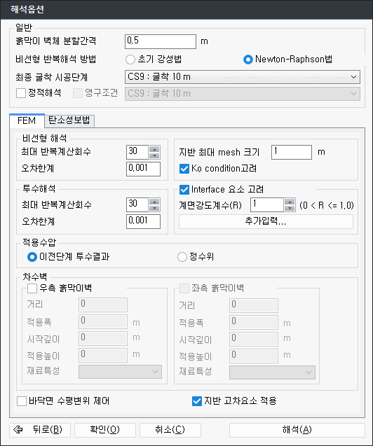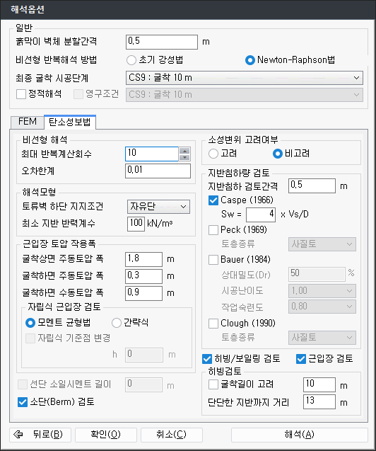 - nAnalType : 탄소성보법 해석방법