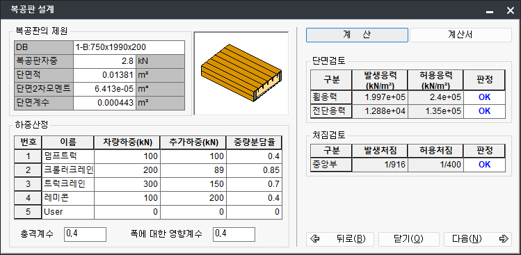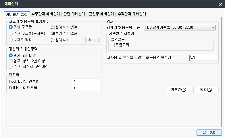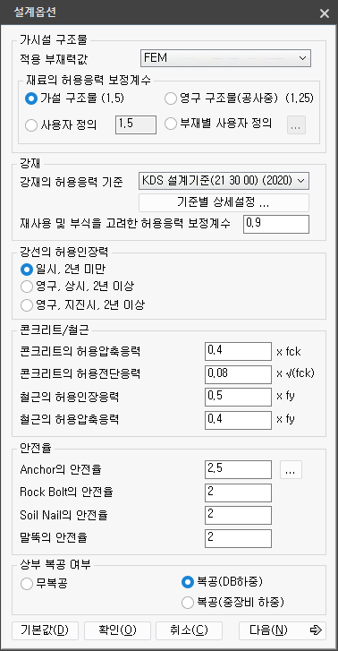 - nAlwFactor : 단면검토시 허용응력 보정계수
