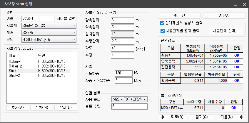 - AllowFact_ST : 가설조건 허용응력 증가계수