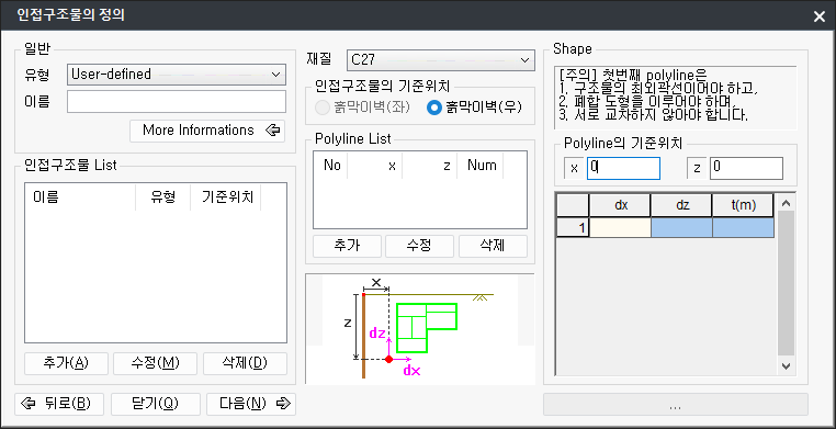 - bModifiedGL : 흙막이벽 연장 이격거리의 사용여부