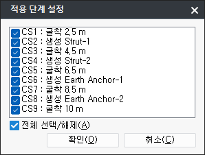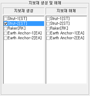 버튼을 클릭하여 생성 또는 해체되는 지보재를 선택합니다.