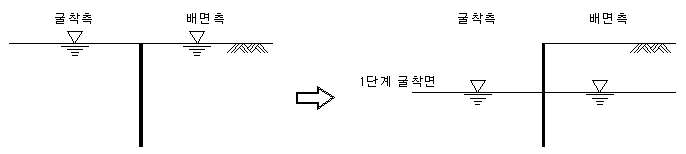 굴착면에서 최대수압이 발생하는 경우 (예시)