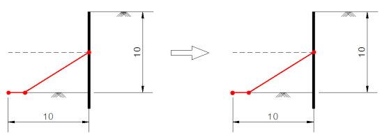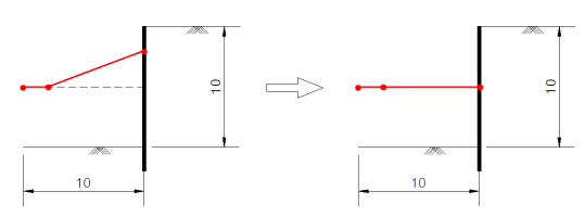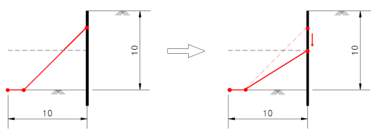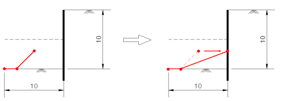 - 선형변화의 x 최대값이 굴착폭보다 작게 입력된 경우 ⇒ x 최대값의 좌표를 굴착폭에 맞게 위치를 평행이동하여 해석에 반영됩니다.