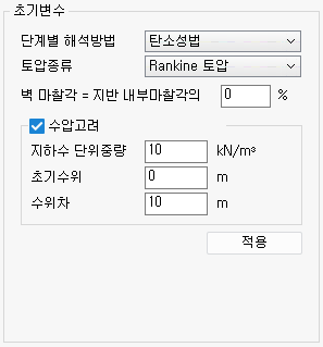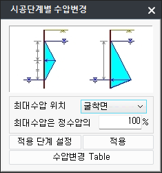 - "시공단계 > 초기변수정의" 에서 수압을 입력한 경우만 활성화됩니다.