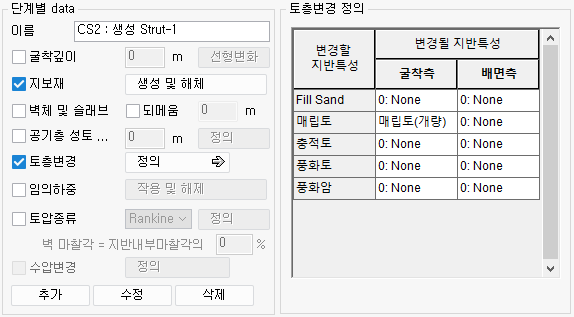 해당 시공단계에서 지반의 특성이 변경되는 경우에 선택합니다.