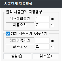 모델 > 시공단계 > 굴착시공단계 자동생성 메뉴를 선택한 경우