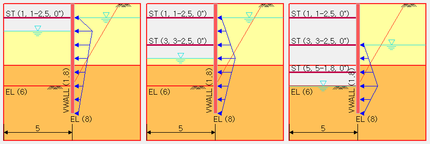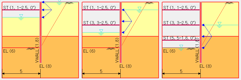 - 기본 전제 : 배면측 수위와 굴착면에서의 수압은 "0"으로 입력됩니다.