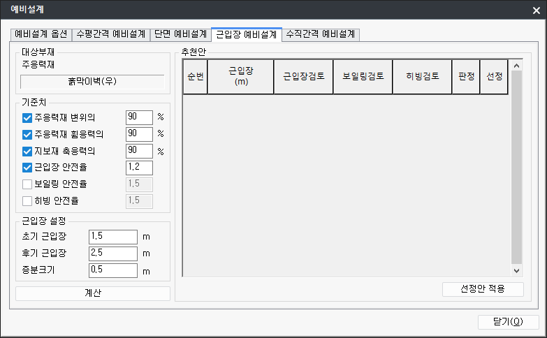 - 근입장 안전율 : 근입장검토에 대한 안전율을 정의합니다.