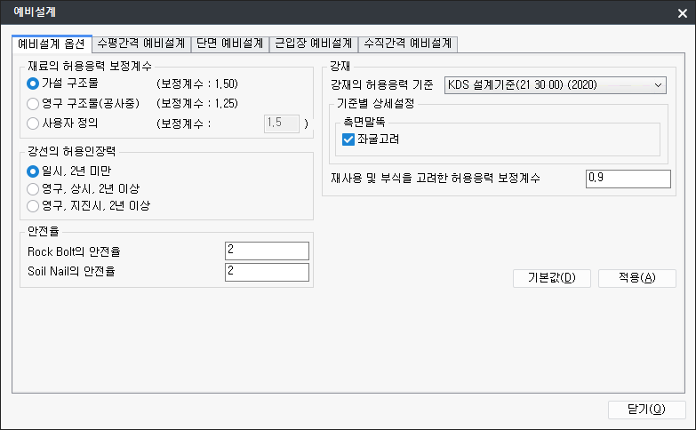 Soil Nail 안전율 : Soil Nail 설계시 적용됩니다.