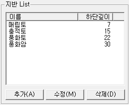 버튼을 통해 Spread Sheet 형식으로 데이터를 추가/수정/삭제할 수 있습니다. 지층의 개수가 많을 경우에 편리하게 입력할 수 있습니다.