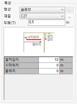 - 지반특성에서 입력하는 단위중량, 점착력 등의 데이터는 토압의 크기와 탄소성스프링의 강성을 구하기 위해 필요한 항목입니다.