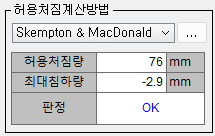 - 인접구조물이 존재하는 경우에만 허용처짐에 대한 검토를 수행하고, 인접구조물이 존재하지 않는 경우에는 침하량만 출력합니다.