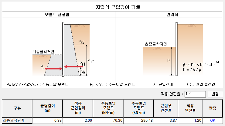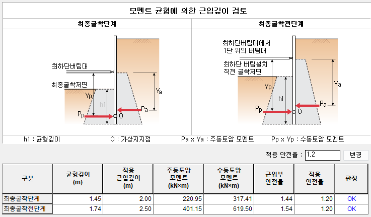 검토방법에 대한 자세한 내용은 Analysis Reference의 "III-5. 근입 깊이 검토" 부분을 참조하시기 바랍니다.