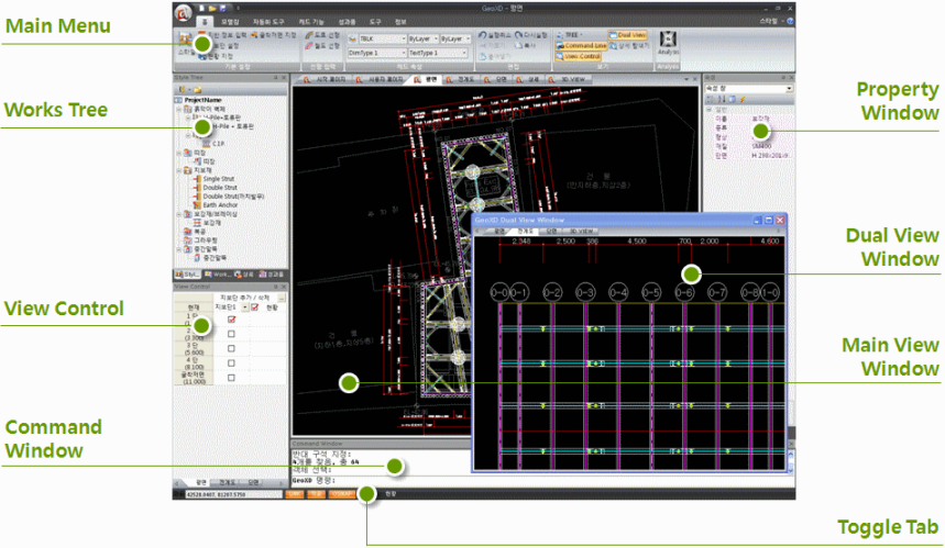 GeoXD Analysis Home > 도구 > GEOXD Analysis¶ 기능 가시설 프로젝트의 각종 부재설계, 다양한 도면성과품, 수량산출서의 최종성과품을 생성하는 GEOXD Analysis를 오픈합니다. 호출 Main Menu : 도구 > GEOXD Analysis 프로젝트¶ 상세설명¶ 자세한 내용은 GEOXD Analysis의 온라인 메뉴얼을 참고하시기 바랍니다. 최종 수정일: 2026-03-20