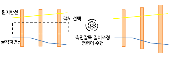 평면 또는 전개도 View에서 선택한 모든 흙막이 벽체 측면말뚝에 대한 돌출높이 및 근입깊이를 자동으로 조정하는 기능입니다.